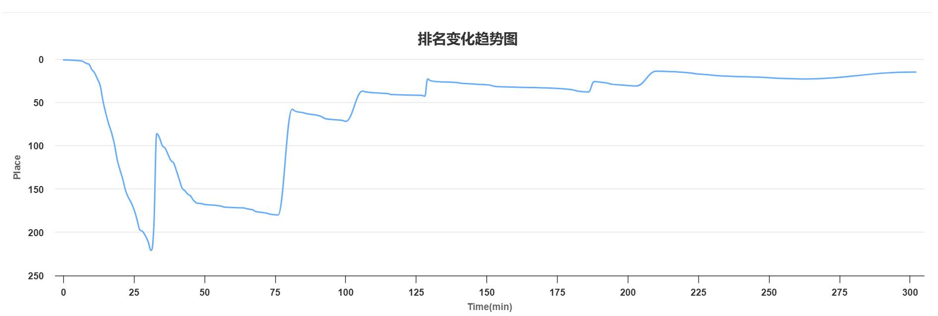 E 过了之后我火速上机开始写代码,前期我们的排名一度掉到 200 开外,过了 E 之后才逐渐回到金牌区末尾。把代码写完之后 d 了几个简单的 bug 过了样例,交上去 WA 了。呼叫队友帮忙看代码,发现