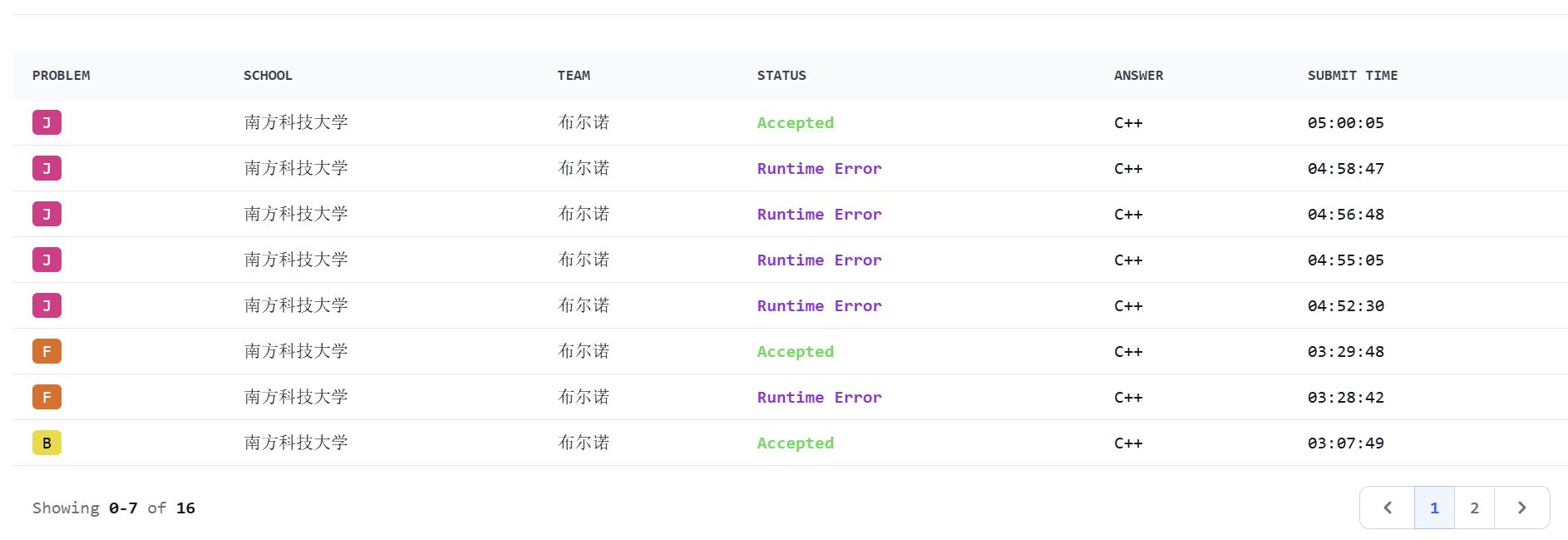 还剩十几分钟的时候把样例过了,交上去发现 RE,把数组开大之后发现还是 RE。此时想起来 bcgg 的状态处理中用到了减法,估计是下标爆到负数了。但是我们百思不得 qj 为什么会出现负数的情况。最后 txgg 敏锐地想起来既然数据中有自环,那么有重边也是很正常的,而我们的代码就是在有重边的时候会挂,修好之后一发过了。提交时间是 5h0min5s,如果没有延长的 3min,可能真要 7 题倒闭了。