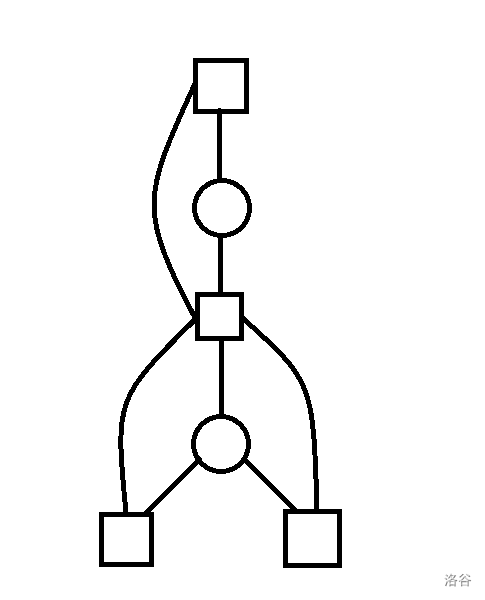 - 如果遇到一个方点有三叉的情况,那么根结点(关键方点)肯定不在它连了其中两个叉的圆点的子树中。