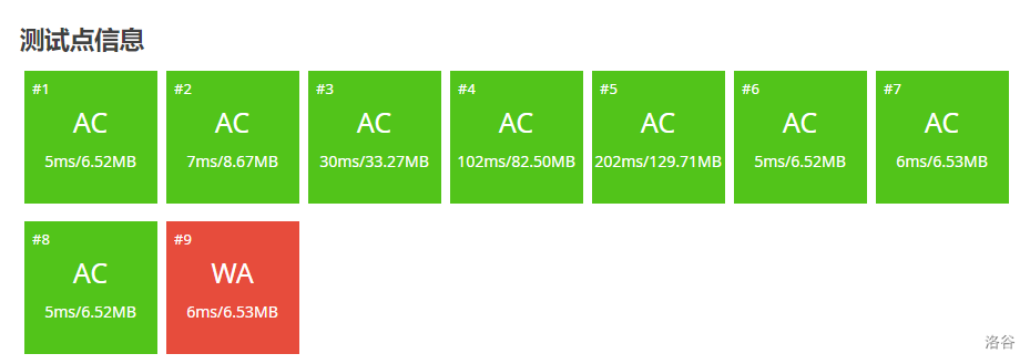 看这段代码,是不是感觉能AC?但实际上:第九个测试点竟然WA了!!!然后我们下载测试点看一看: