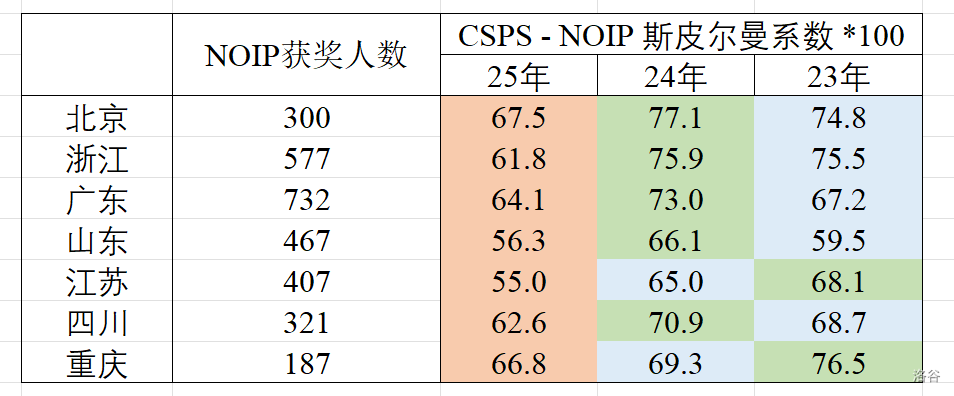 于是,我统计了之前提到的大省们近三年的 CSP 与该年 NOIP 的 值,结果如下: