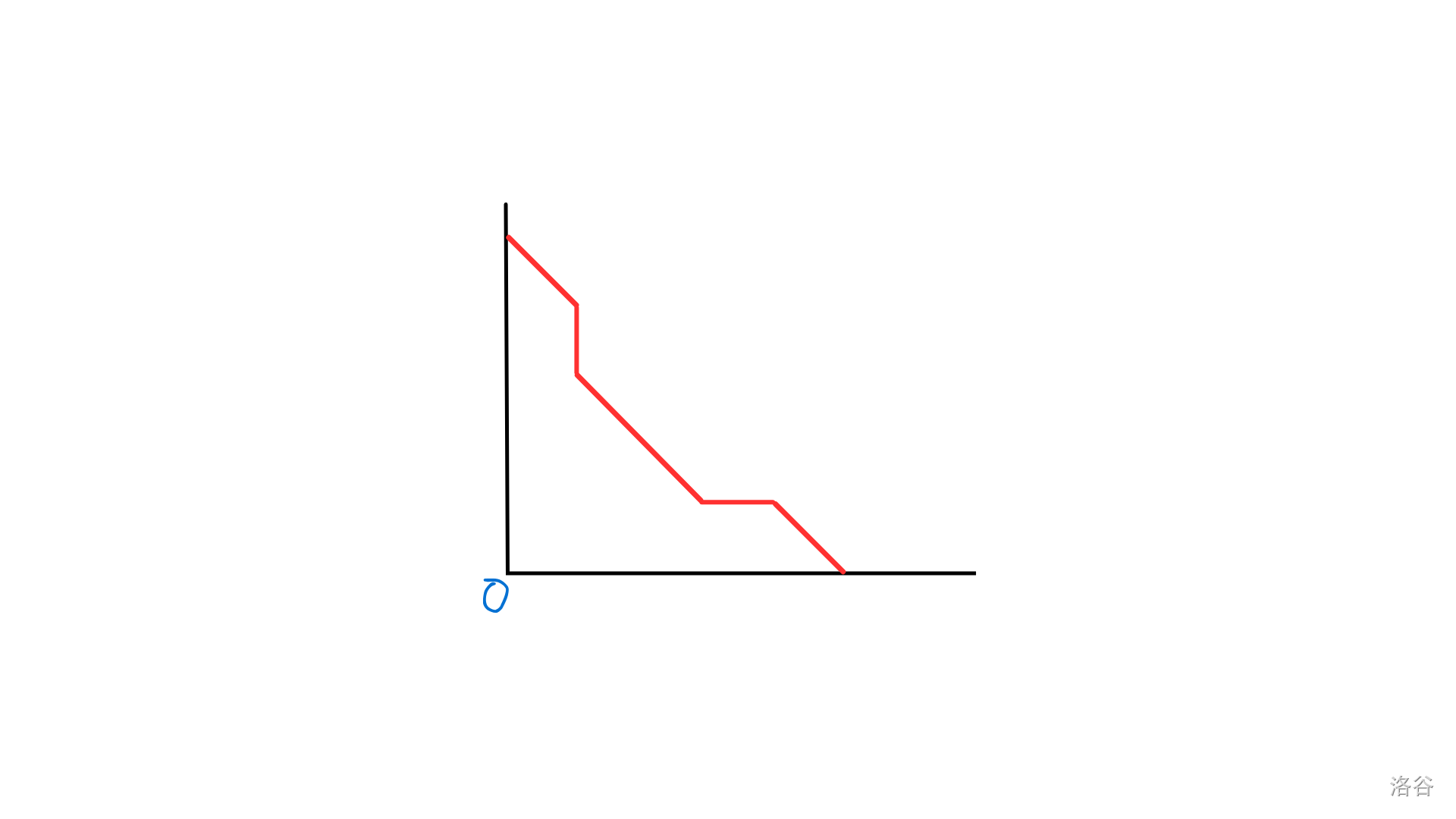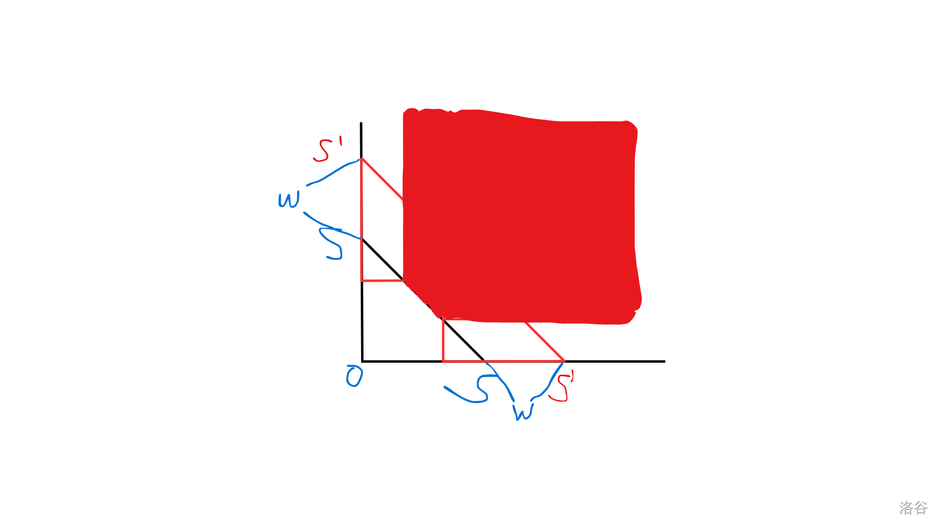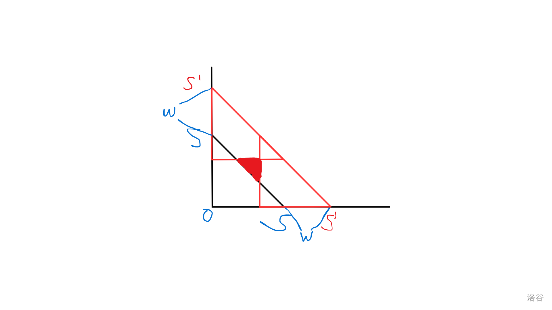 其中涂红的那个小三角就是取不到的部分。考虑他的约束,其实就会成这样: