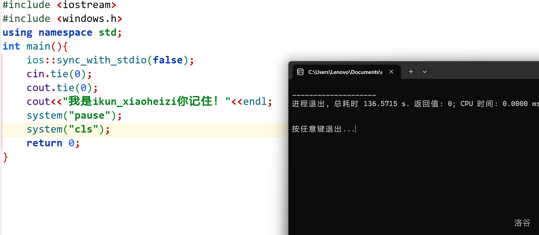 system("cls");这个指令的作用是清屏,清除运行框里所有的内容。示例: