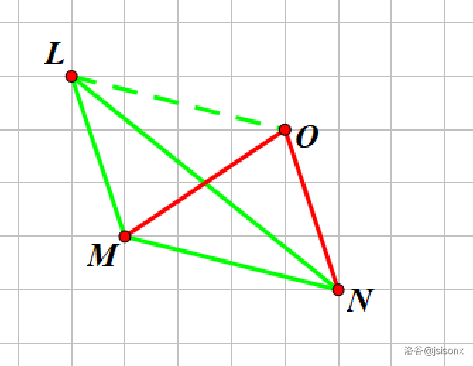 由上面两条事实可以发现,对于钝角三角形,根据第二条事实,平移某个顶点使其成为锐角三角形,然后根据第一条事实,可以把三角形平移使得某个顶点位于原点。因此可以将三角形的一个顶点锁定在 ,并且只需考虑锐角三角形的情况(之所以要锐角三角形,是防止有顶点的坐标为负)。下面用两张图解释上面说的: