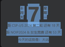 今天因为要放国庆醒的比较早,然后 起来把另一张数学卷子的最后一大题写了,然后因为没表出门去刷脸机上看了时间发现是 异形乡欢迎我,然后洗漱了下实在呆不下去了就偷了借走了同学的电梯卡,,结果一楼门没开,又写了半张信息卷子后被宿管抓住遣返了。在寝室没写出那张数学卷子的倒数第二大题,破防下播。
