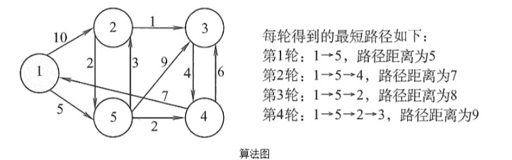 dist[2]=10,dist[3]=∞,dist[4]=∞,dist[5]=5。