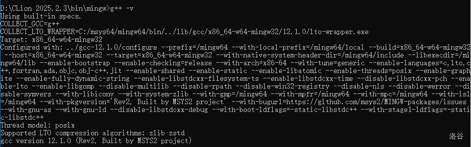 进入你刚刚新建的项目,它会让你先配置一个工具链,Clion 自己是捆绑安装了工具链的,所以大部分情况下你只需要点一下确定就可以了,如果你把 bin 文件夹添加到了 path,你可以在 cmd 里面输入