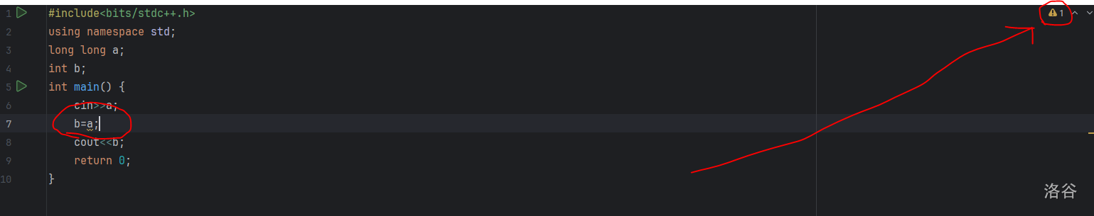 Clion 会在右上角和代码本身提醒你:“你把一个