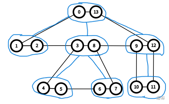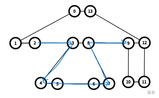 可以发现,经过以上操作之后,同一个环上两个点的最短路就一定在环上了。