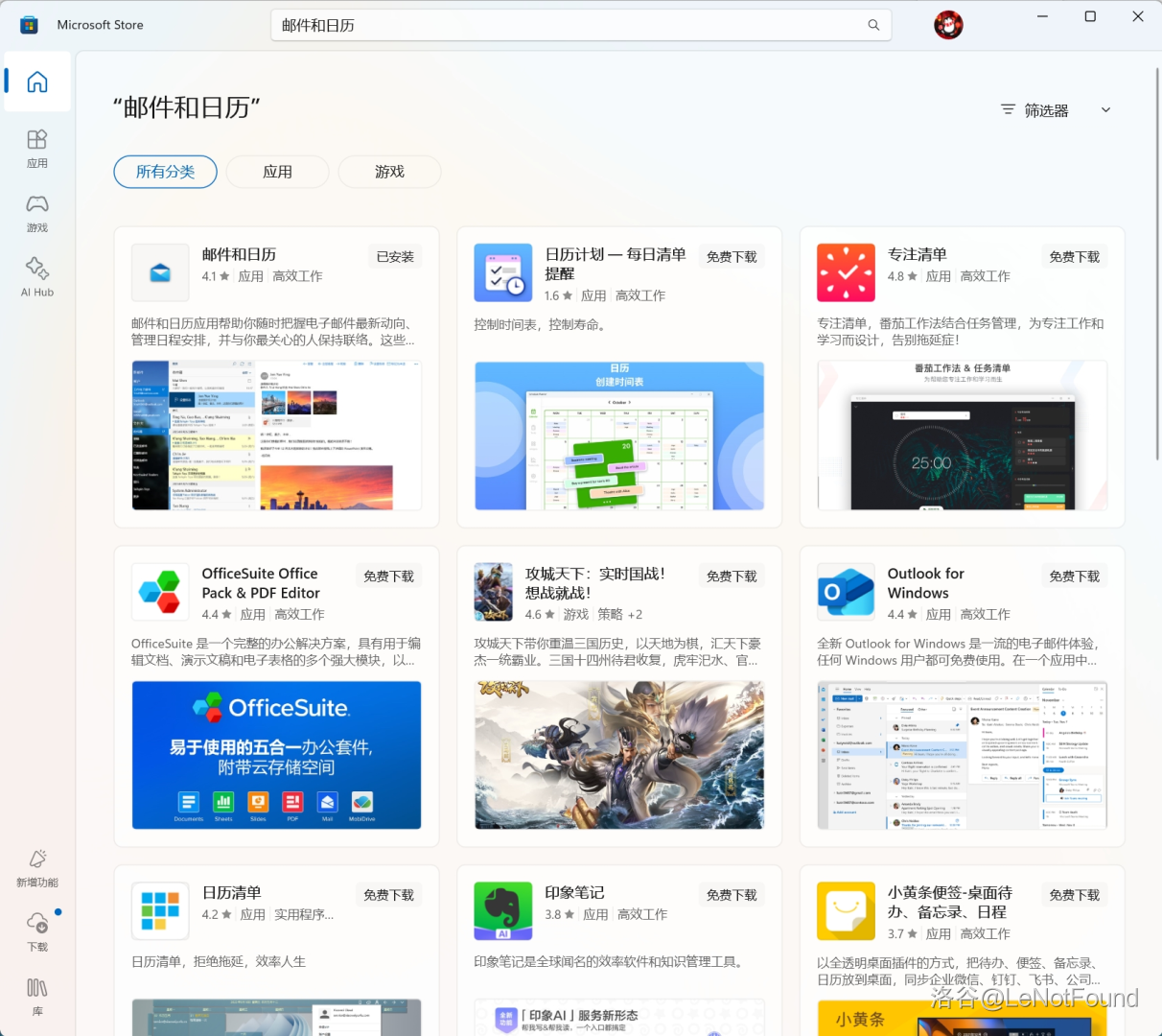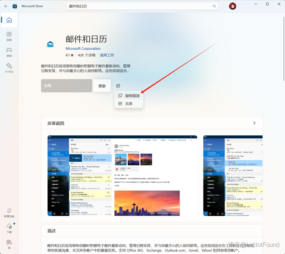 去微软商店搜索 邮件和日历