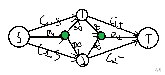 这个东西的合理之处在于最小割可以计算两点在不同集合时的代价和在相同集合时的收益。两个分开说是因为这两个都必须是正的。