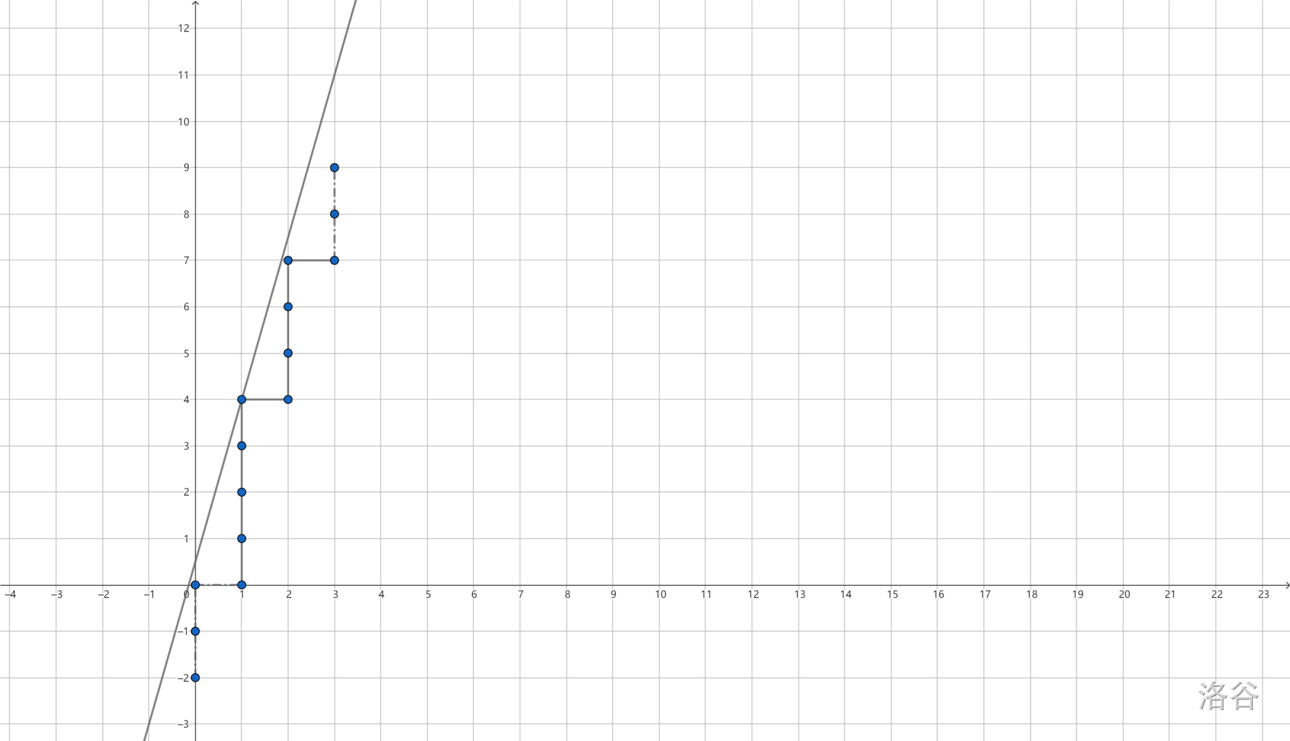 m = ⌊ p n + r q ⌋ m = \left\lfloor \dfrac{pn + r}{q} \right\rfloor m = ⌊ q p n + r ⌋ ,则折线定义域为