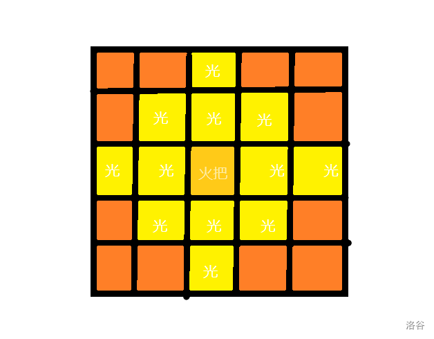 const int h_dy[]={0,-1,0,1,-2,-1,0,1,2,-1,0,1,0};//火把偏移量