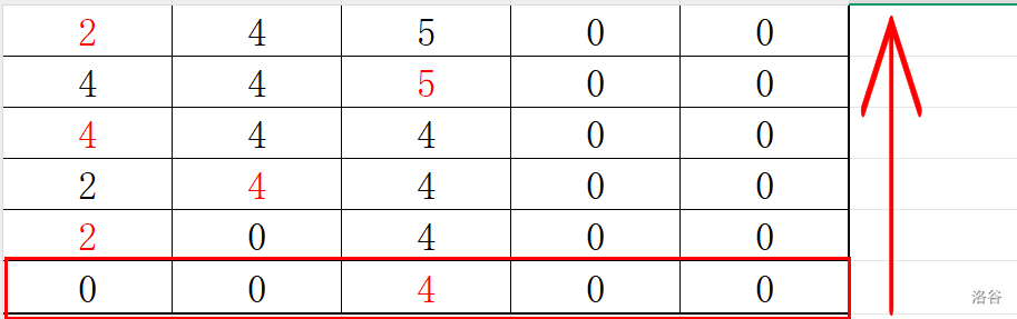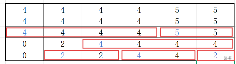 先处理 最大的这个 ,这里我们记第 行上一次处理的位置为 (初始都为 ),那么我们对区间 (即 )进行区间 max 操作,然后 变为 。