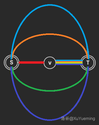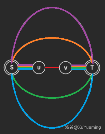 从而,我们证明了,只有 case 1、case 2、case 3、case 4 这几种点双的形态是合法的,进一步全部都可以归纳到 case 4 中:存在两个点 ,他们之间连了若干条简单链。 条链分别退化到 case 1、case 2、case 3。