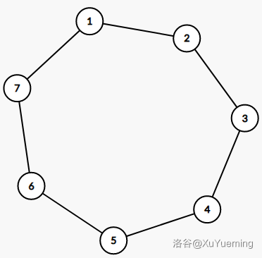我们只需要说明,存在一种给 赋权的方式,使得任意两个简单环的边权和相等。图上有三个简单环,设边权和分别为 ,有:只需令 ,其中 为任意正整数,就能使 。 -