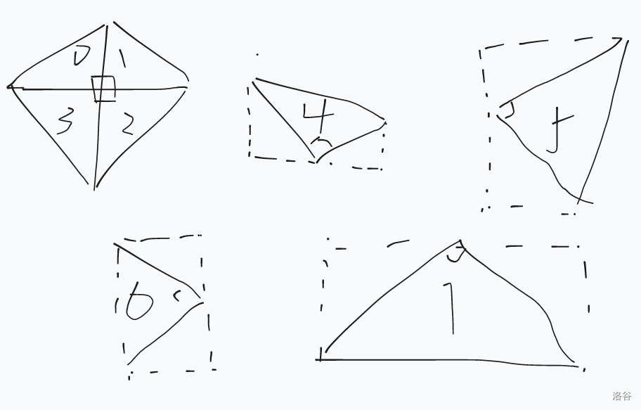 考虑枚举直角顶点 ,然后分为了 种贡献情况。