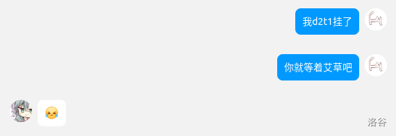 然后直接红温了,下了代码一测,评测结果跟脸一样红。写了个拍子, 的数据拍了两组就爆了。也就是但凡场上写了一个对拍都能拍出来。然后调了一下,发现在核心循环查询一个位置是 还是 时取的是 而不是按 排序的序列数组的第 项。一方面感觉自己奶完了,一方面感觉这也能过大样例?不过考虑 D1T2 这种数据强度也合理了,并且这种 Yes/No 题本来就有概率蒙对,而且暴力又好写,为啥不拍嘞。你尽力牛魔呢。我不禁释怀地笑。