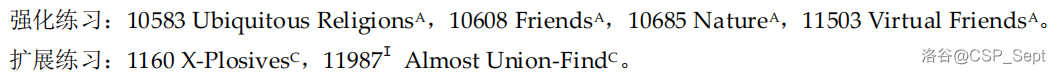 以本书 2.12 章并查集为例,在章末给出了如下习题: