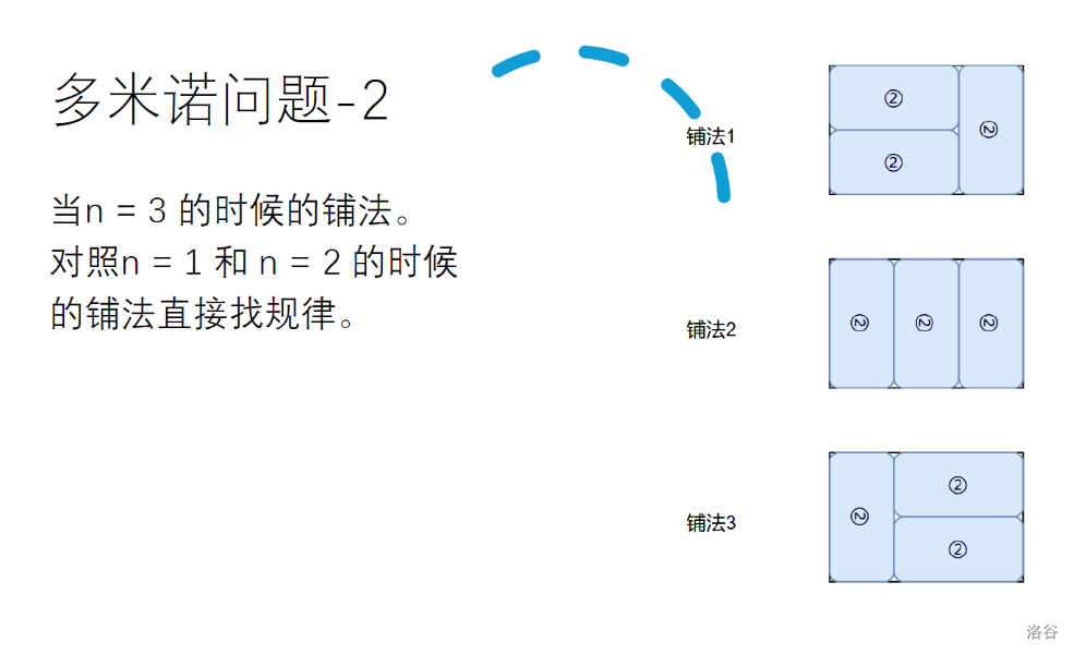 如果没有障碍,那么答案一定会是一个斐波那契数,于是就可以拿到部分分如果障碍横向放置,那么竖着的就只有一种摆法,塞一个1*2
