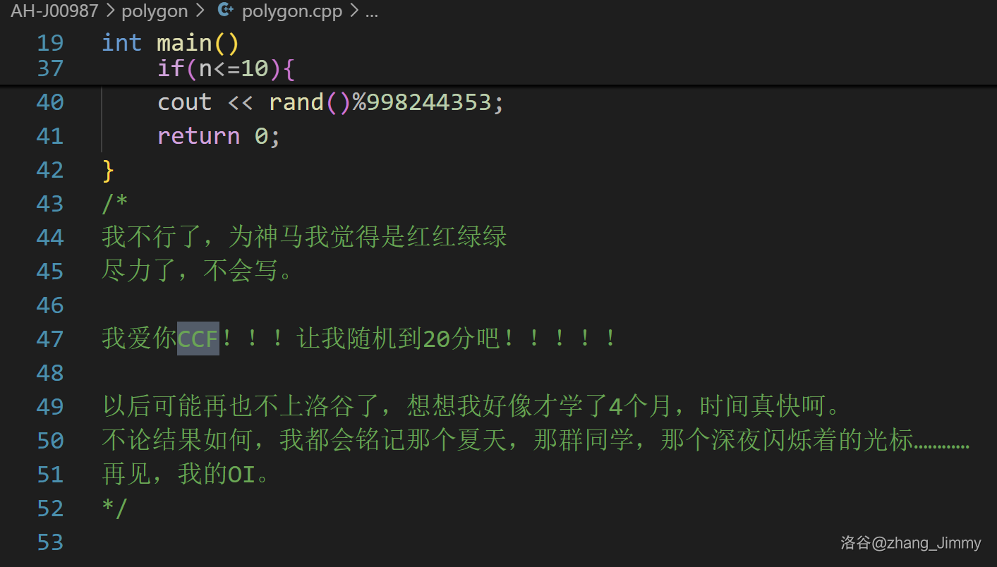 - 这位考生表达了对 CCF 题目的绝望以及想骗分的渴望: