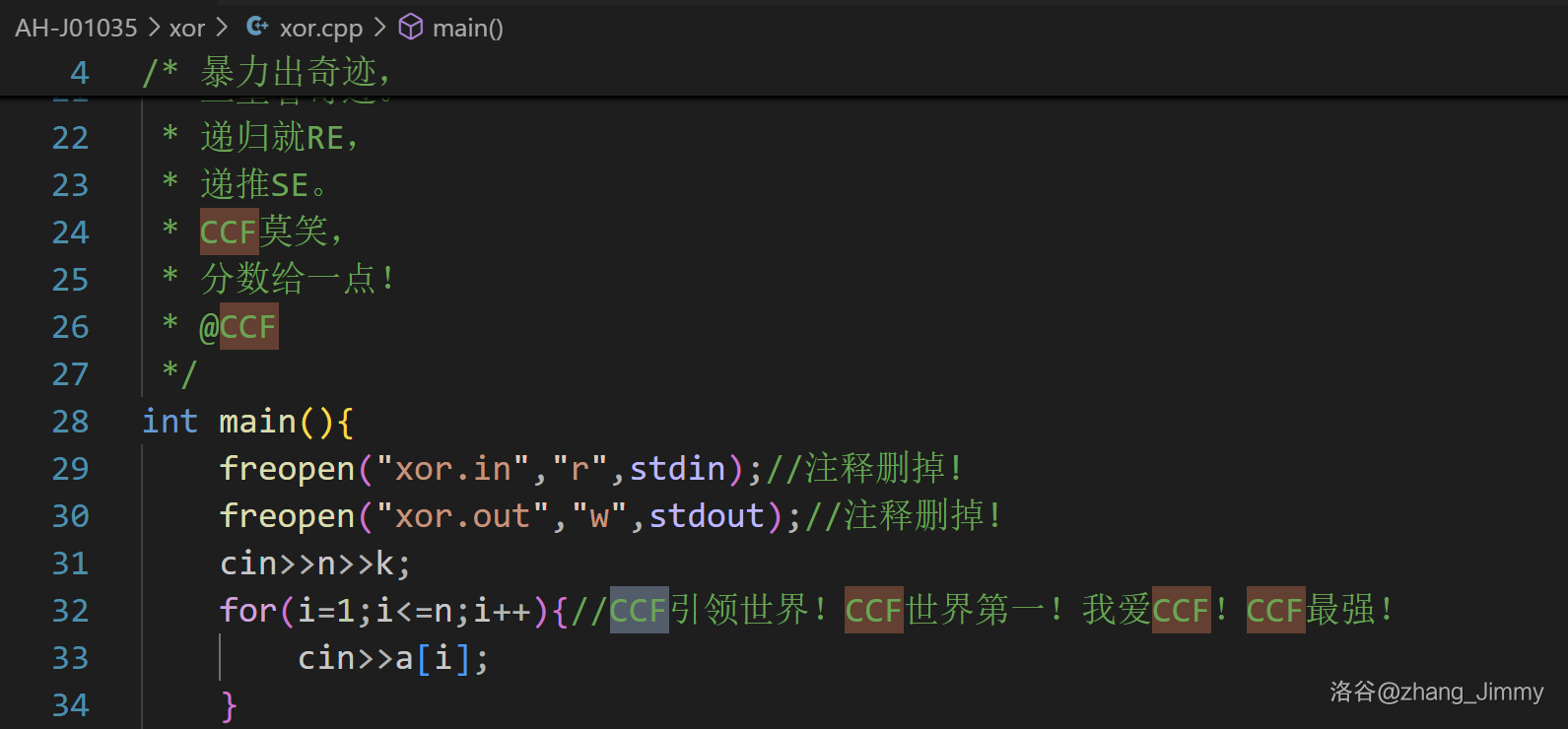 - AH-J00156 在 seat 中写出了貌似是唯一对 CCF 比较正常的一句: