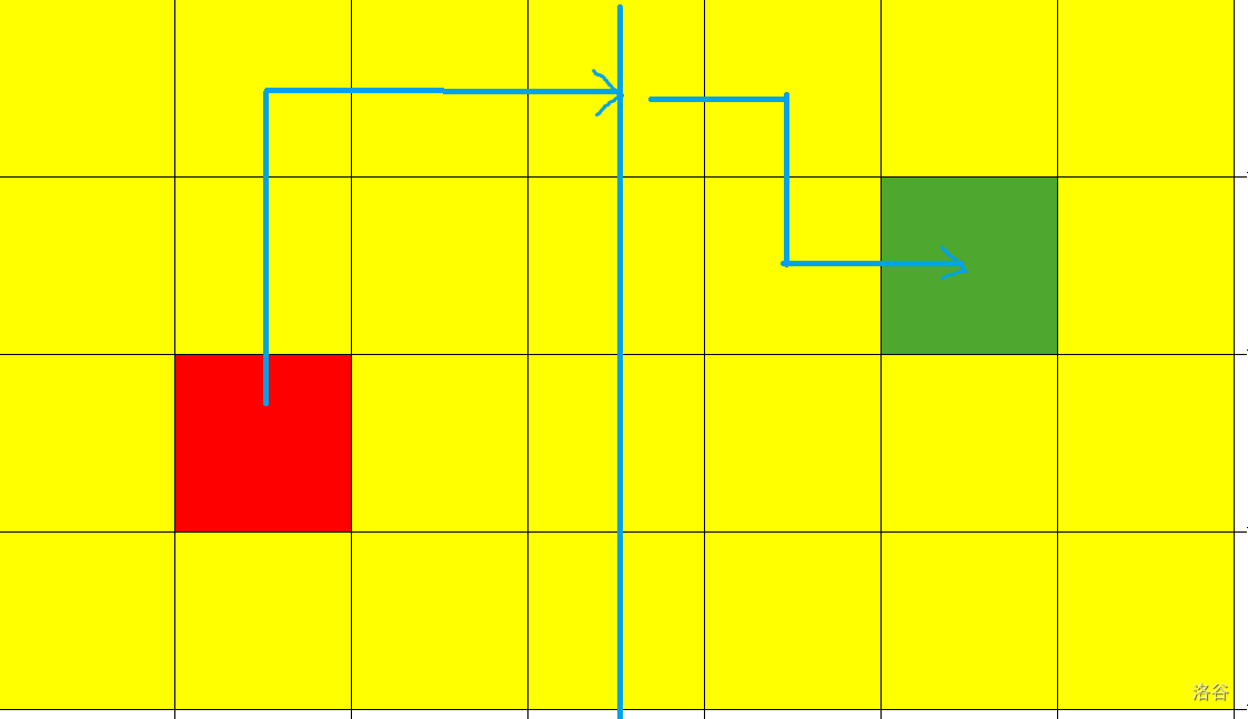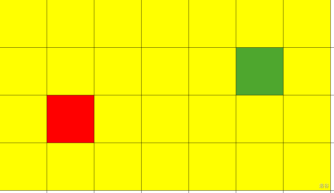 考虑下面这个例子,红色为起点,绿色为终点。