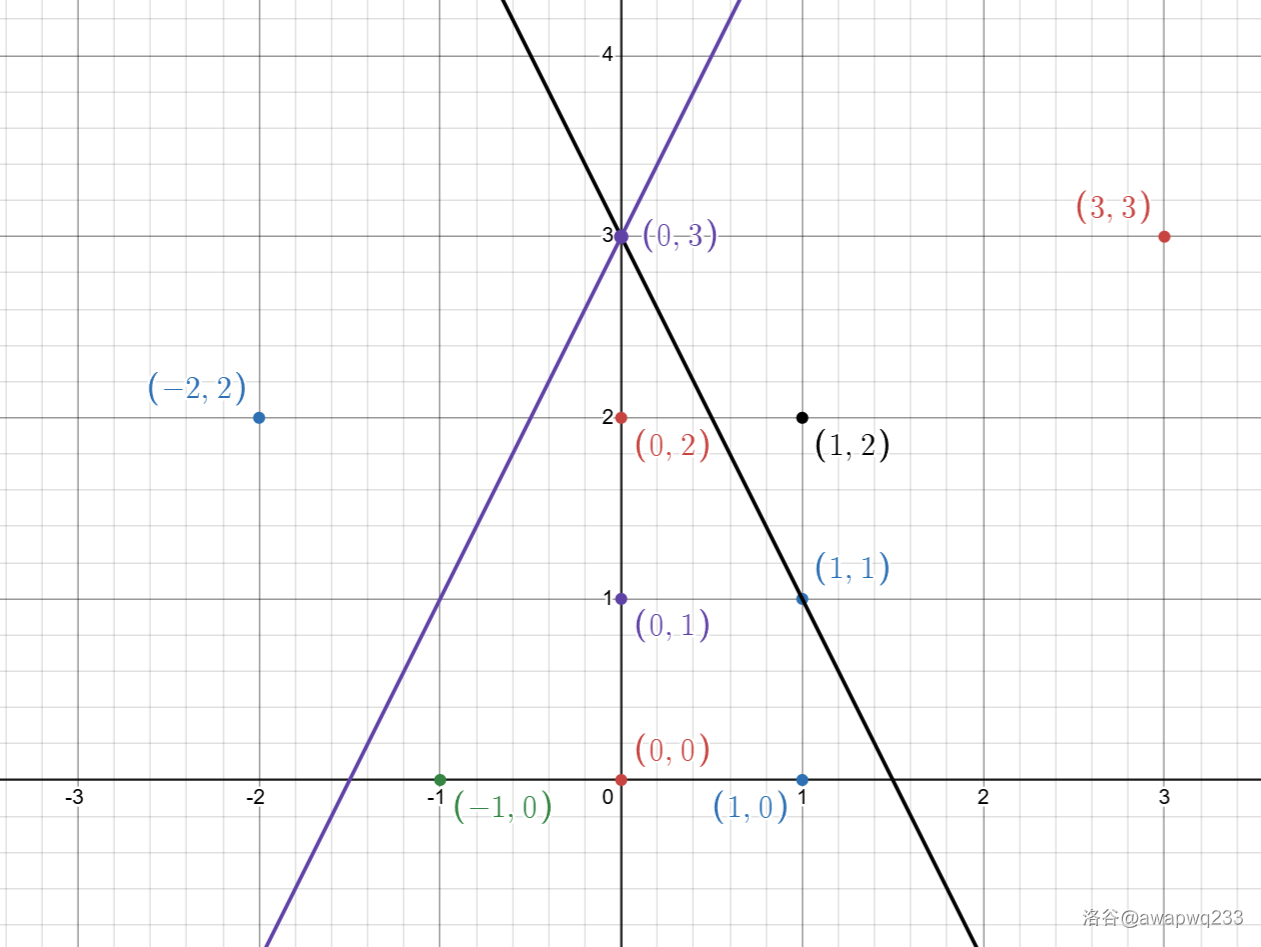 容易发现,能转移到当前点的节点都在过当前点的斜率为 的两条直线围成的区域下方。我们是否能对于每个点找到它的范围内的最大 呢?