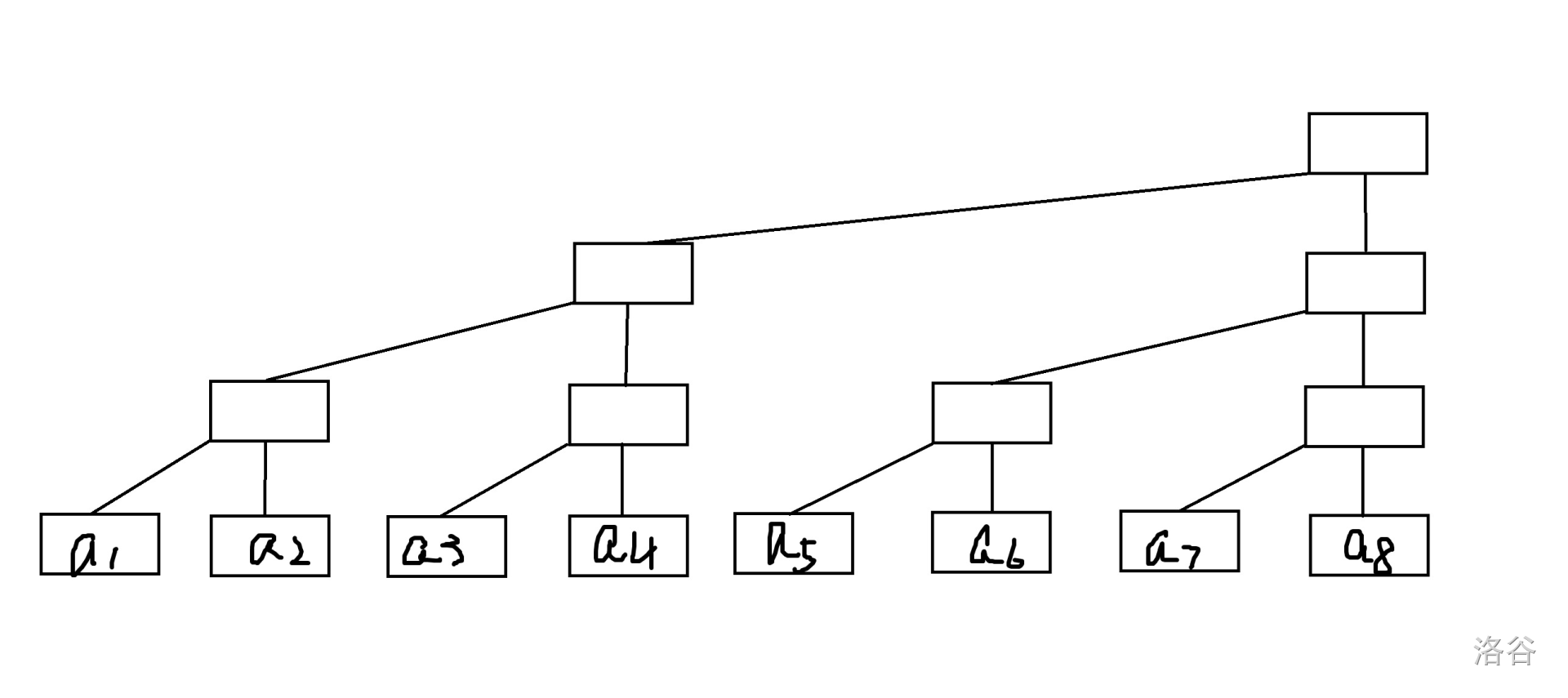 观察后可发现,一个二叉树如果只保留每一列最上面的一个节点,就是其对应的树状数组。 -