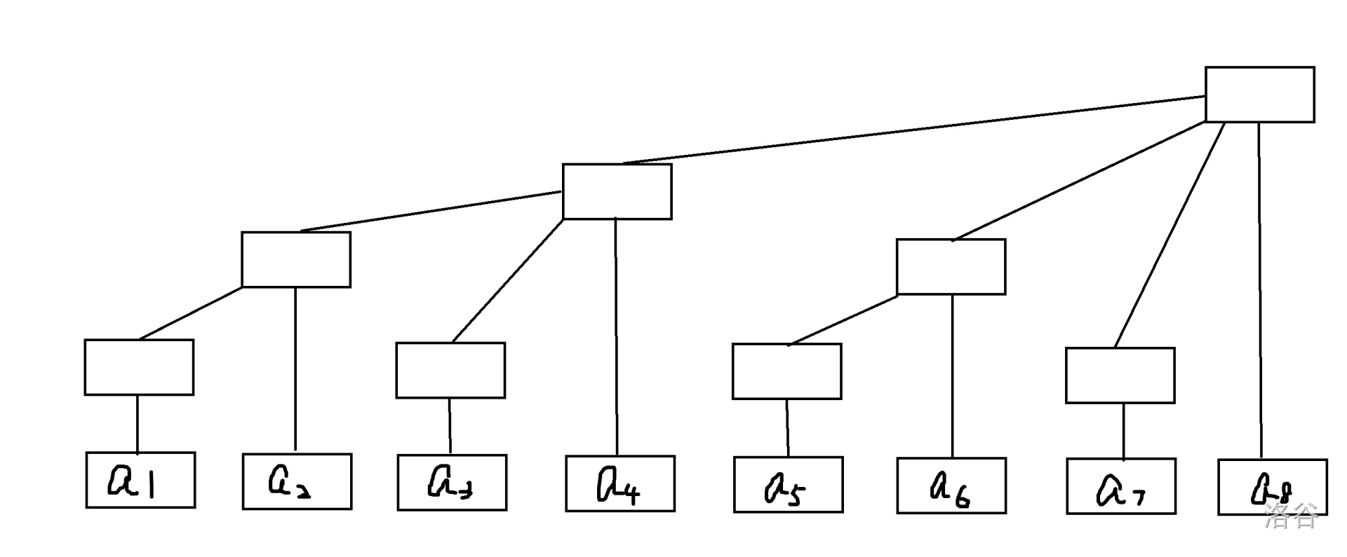 与二叉树的区别:简单来说,树状数组比二叉树少了大部分非叶子节点的子节点。以下两幅图帮助理解:(1)一个倾斜的二叉树