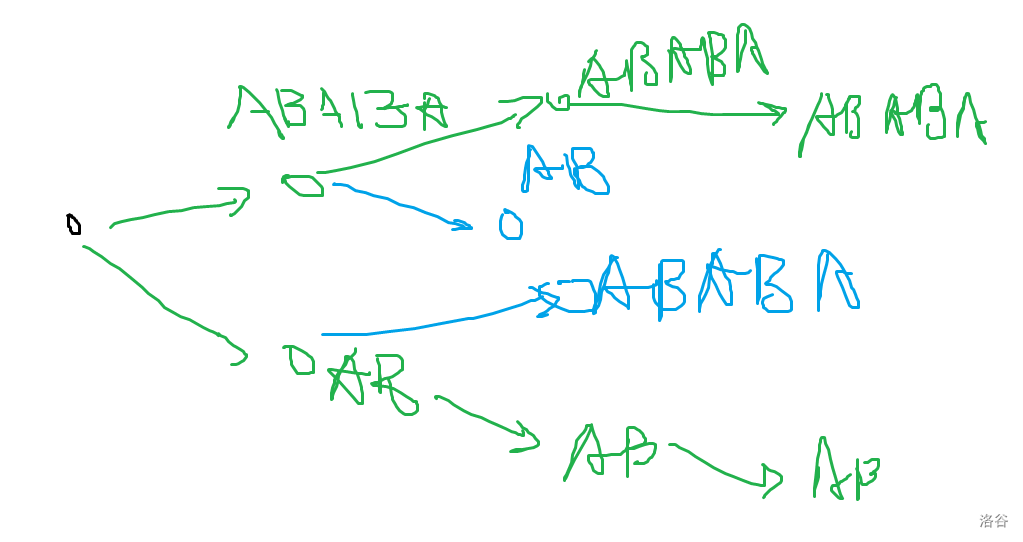ABABA和AB比较,考虑后面的向量的角度要比相同向量在前面的位置的角度要小,所以可以理解为后面向量对加和的向量的影响更小。考虑不断往两边走,等价于走一次之后往中间走,然后比较哪一个对向量的影响更大。 可以假想中间有一条线割开两边。 - 以后遇到一些向量的无限项加和的比较,并且后面的向量的影响越来越小,考虑能否把其交换一下,考虑前一个向量先导得更多。