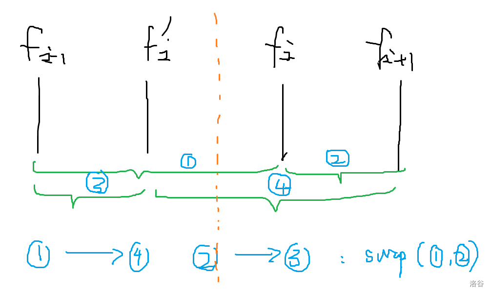 类似这样,相当于反转差分数组,然后我们考虑差分数组,就相当于每次反转相邻的两个位置。根据置换,可以用环大小来表示这个到达的位置。
