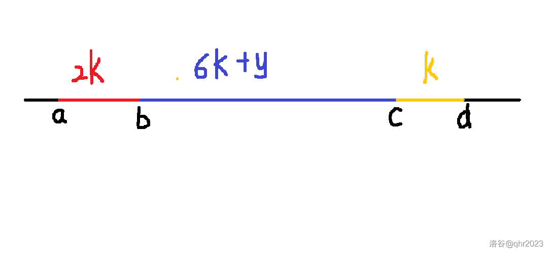 b=a+2*k, c=b+6*k+1, d=c+k,