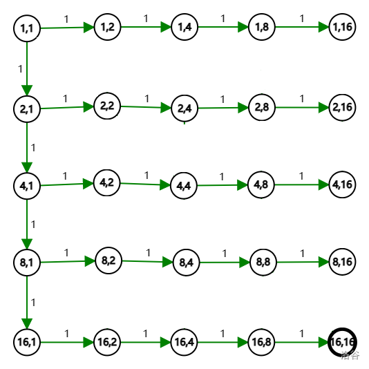 观察下面一张格点有向图: