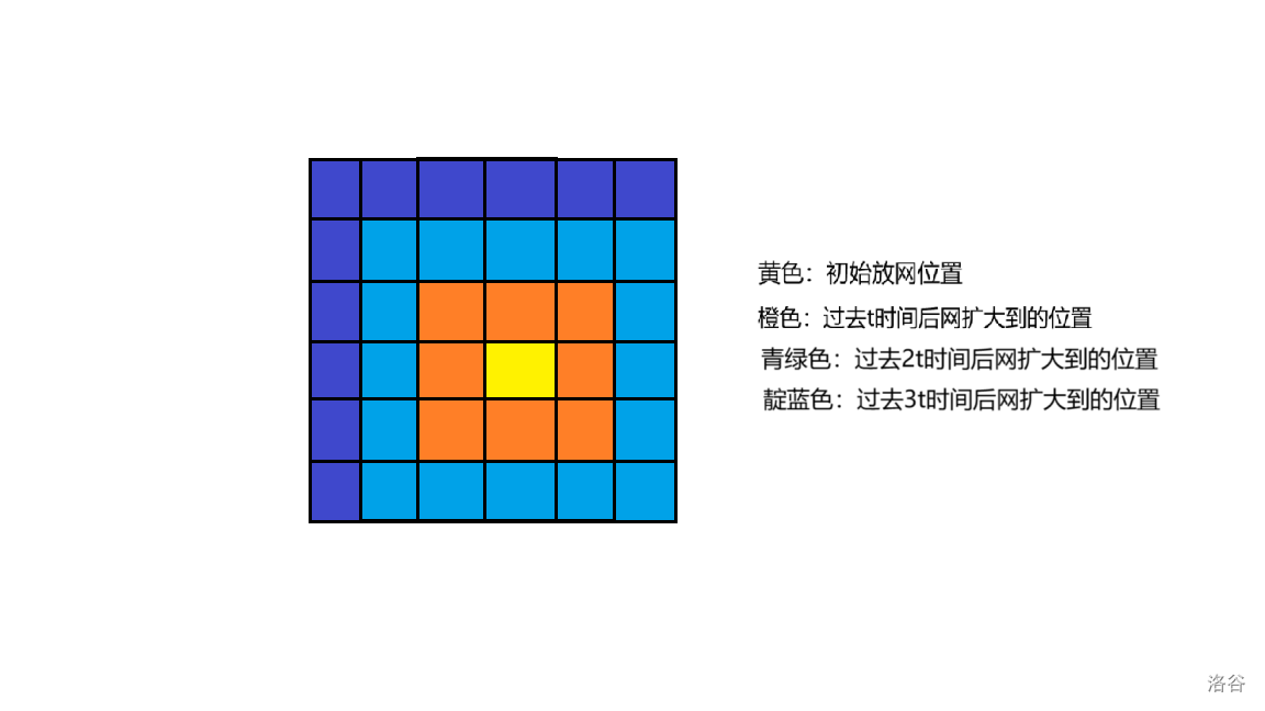 根据题意,我们发现,渔网的扩大实际如下图所示: