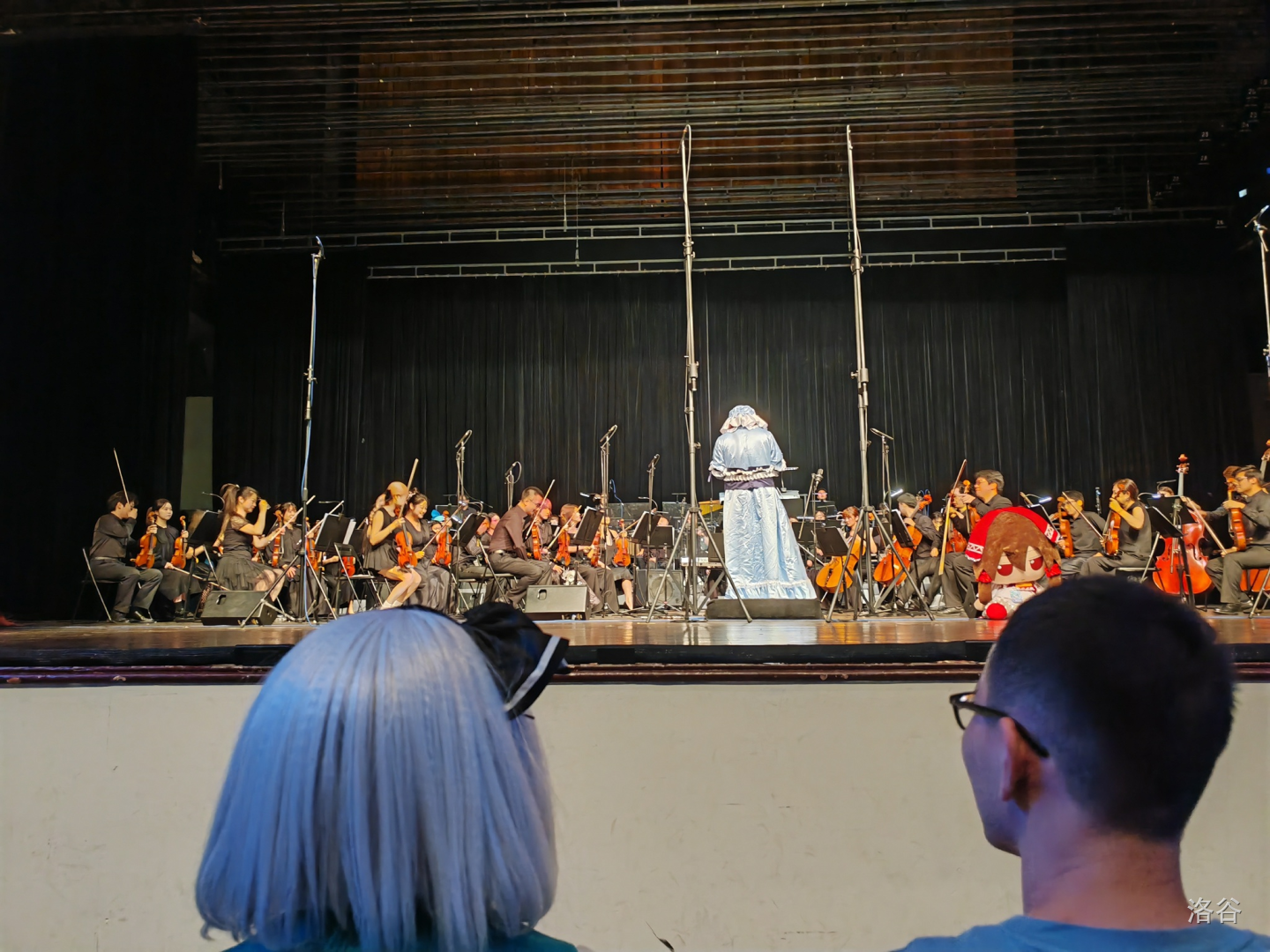 这次演出的指挥是王弘之指挥,也是幻奏盛宴的老熟人了。2023 年的幻奏盛宴在距离云峰剧院一站公交的上海商城举办。当时就是王指挥穿上了紫妈的 cosplay 服进行指挥。今年依然是他,但是这次穿的是……幽幽子。