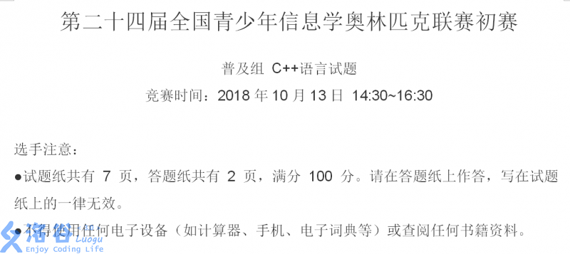 初赛及复赛试题均采用电子版本,各省组织单位可视情况印刷纸质试题。(CCF NOIP2018报名通知)