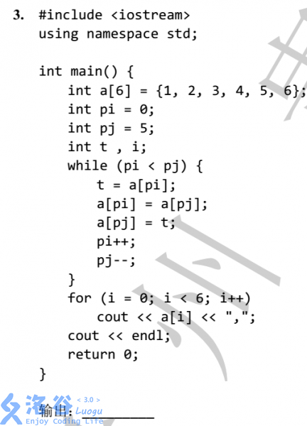 先来说说简单送分题,我这里所指的简单送分题,不仅是指没有循环的,也指那些循环只进行了没几次的简单结构。这类题目一般看看程序顺着其结构往下走就能得到答案,关键是看清楚程序每一步,千万不能因为疏忽大意导致这类题失分。但也许你会说,这类题咋可能会失分呢?这就不对了,且看下面的一个栗子: 不得不提NOIP2016初赛的逗号惨案。