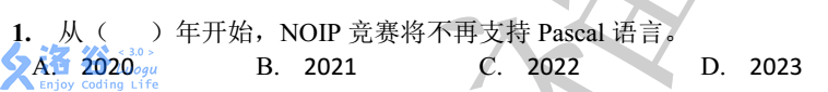 根据国际信息学奥林匹克竞赛(IOI)的相关决议并考虑到我国目前程序设计语言的具体情况,CCF决定:1.2020年开始,除NOIP以外的NOI系列其他赛事(包括冬令营、CTSC、APIO、NOI)将不再支持Pascal语言和C语言;2.从2022年开始,NOIP竞赛也将不再支持Pascal语言。即从NOIP2022开始,NOI系列的所有赛事将全部取消Pascal语言。在无新增程序设计语言的情况下,NOI系列赛事自NOIP2022开始将仅支持C++语言。(CCF关于NOI系列赛事程序设计语言变更的公告)