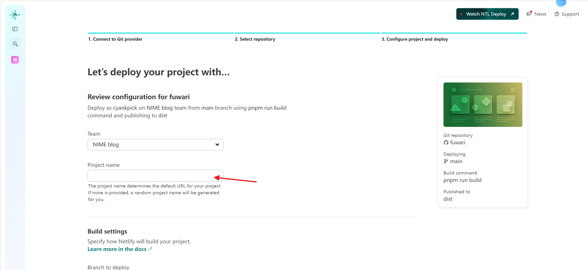 部署成功后,Netlify 会给你个默认域名(当然,上面有填写这里的