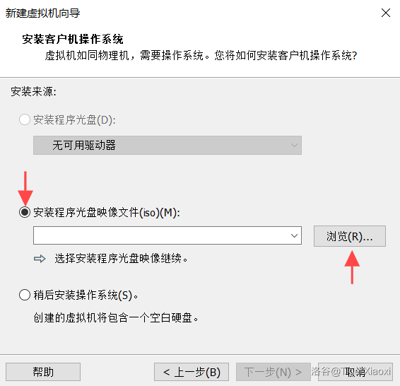 然后点击下一步,选择安装程序光盘映像文件(iso),点击浏览选择我们下载好的光盘映像的位置,选择文件,打开文件,然后点击下一步。