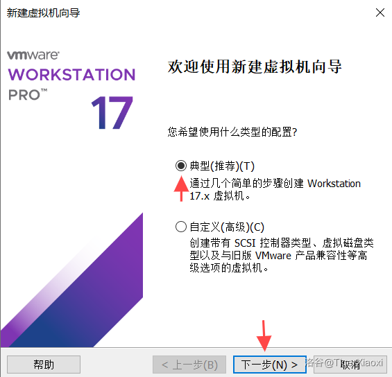 打开VMware Workstation Pro,点击创建新的虚拟机,选择典型(推荐),当然自定义(高级)也可以,这些参数后期都是可以修改的。