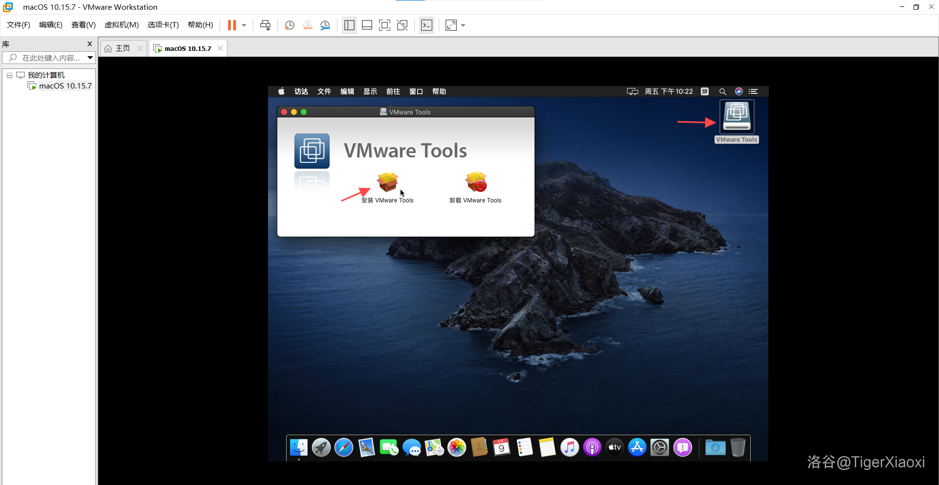 启动虚拟机,在桌面右上角可以看到VMware Tools,双击打开。