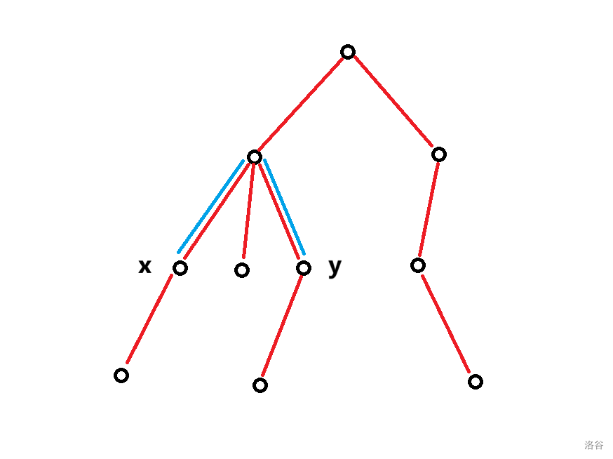 然后我们考虑点 。他可以看作 路径上伸出来的一个枝节(可以向上/下),或者它本身就是在 路径上的点(例如 的公共祖先)。