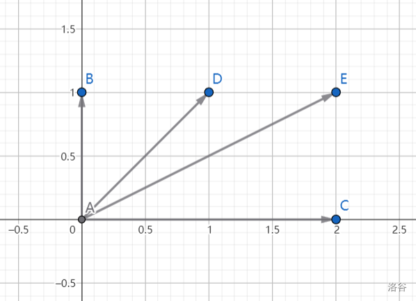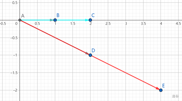 此时我们发现,$\vec{AE}$ 可以表示成两个向量的和: