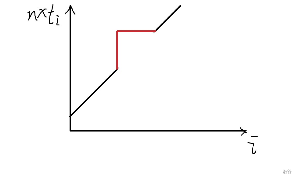 我们发现有两种可能到达 的方式,一种是 且 ,这个情况的最小费用是 ,一种是 且 ,这个情况的最小费用是 ,我们线段树上二分出 的分界点,把两种分开处理。