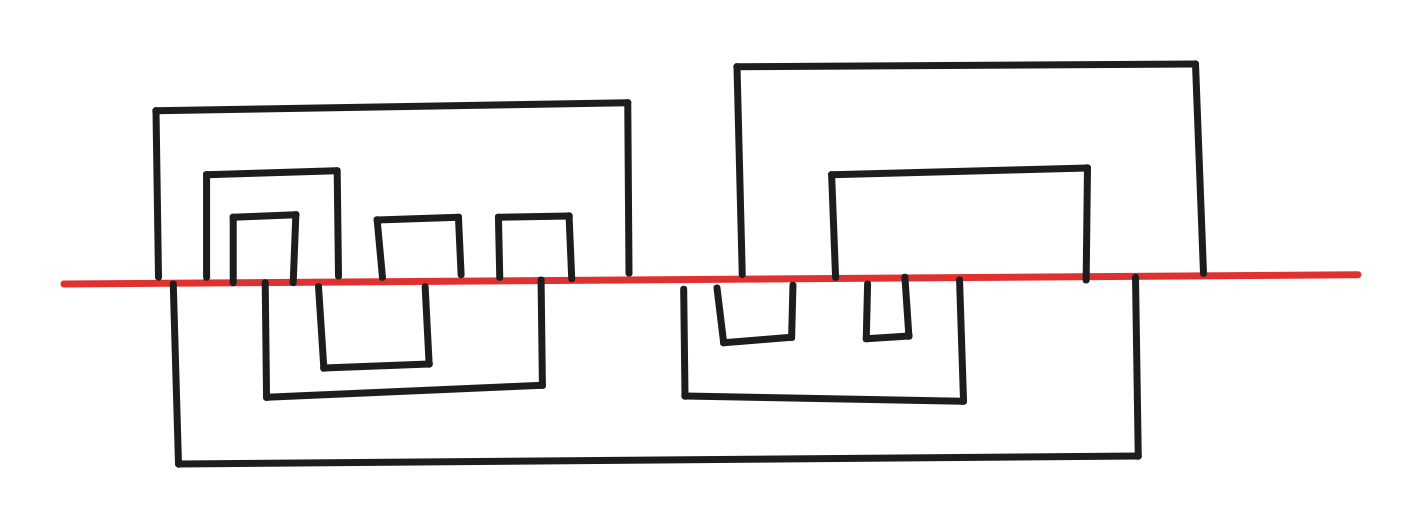 考虑如果折线不能和 轴相交(端点除外),即每条折线要么在 轴上面要么在下面的情况,要如何处理。可以发现如果 ,那么折线 必然处于 轴不同侧。构建一张 个点的图,在所有这样的 之间连边,那么这张图必须是二分图。得到一组二分图染色后,令左部点代表的折线在 轴上方,其余在 轴下方,那么在 轴上方的折线对应的那些 之间要么相离,要么一个完整包含另一个,所以只需要给每个 赋一个“高度” ,满足如果 ,那么 ,然后将折线 构造为