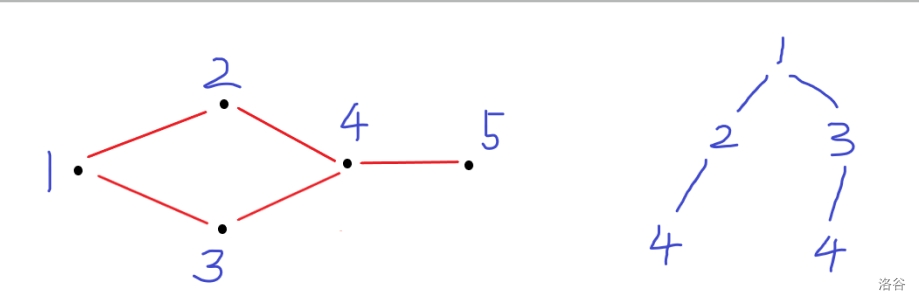 4出发,扩展到5,刚好离开。