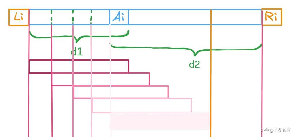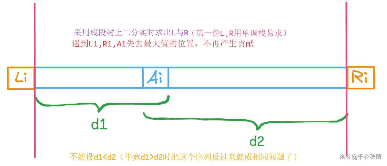 对于区间 ,从 开始往左的可拓展距离 为 。从 开始往右的可拓展距离 为 。