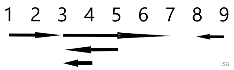 将图中的两个子有向线段反向会导致无解,而如图所示的情况显然不会导致子有向线段的起点的最大值减小。